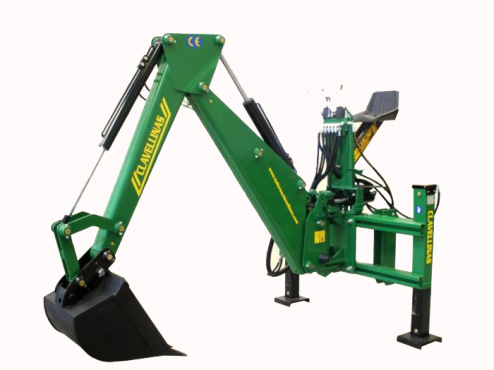 Con enganche rápido tanto al tractor como al cazo; desplazamiento lateral mecánico y giro de hasta 180º.