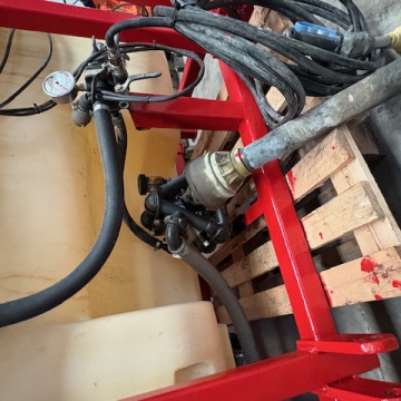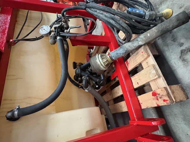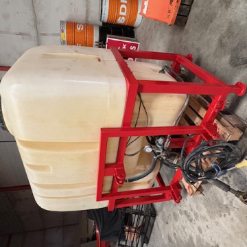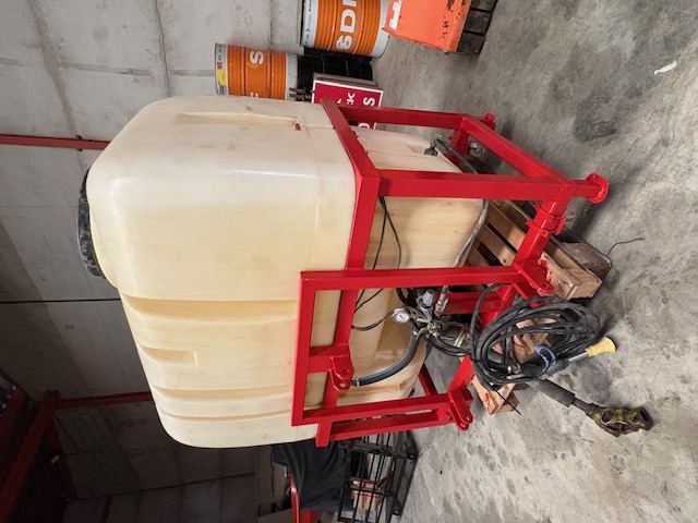 Equipo suspendido de 1200 litros con depósito de polietileno y bomba de membranas de baja presión de 100 litros.