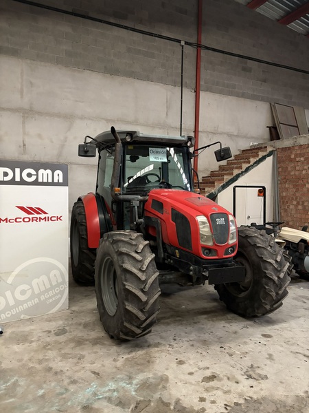 Motor de 4 cilindros - 105 cv - Cambio sincronizado con inversor hidráulico y Súperreductor - Hi-LO - Cabina Original con Aire Acondicionado - 4 vías hidráulicas - Freno Hidráulico de remolque - Enganches rápidos - Anclajes de Pala